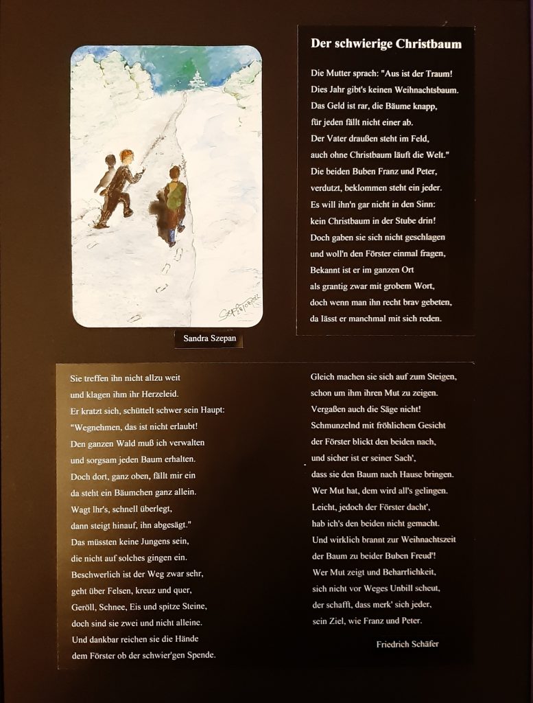2022_Illustration zu Weihnachtsgedicht_Aquarell2022_Illustration zu Weihnachtsgedicht_Aquarell2022_Illustration zu Weihnachtsgedicht_Tuschestift2022_Illustration zu Weihnachtsgedicht_Tuschestift2022_Illustration zu Weihnachtsgedicht_Aquarell2022_Illustration zu Weihnachtsgedicht_Tuschestift2022_Illustration zu Weihnachtsgedicht_Aquarell2022_Illustration zu Weihnachtsgedicht_Aquarell2022_Illustration zu Weihnachtsgedicht_Tuschestift2022_Illustration zu Weihnachtsgedicht_Tuschestift und Aquarell2022_Illustration zu Weihnachtsgedicht_TuschestiftMohnblumen, Sandra Szepan, Aquarell, 2022Orankesee, Sandra Szepan, Aquarell, 2022Abendstimmung in Weißensee, Sandra Szepan, Aquarell, 2022Weißensee, Sandra Szepan, Aquarell, 2022Tief drinnen, Sandra Szepan, Acryl, 2022